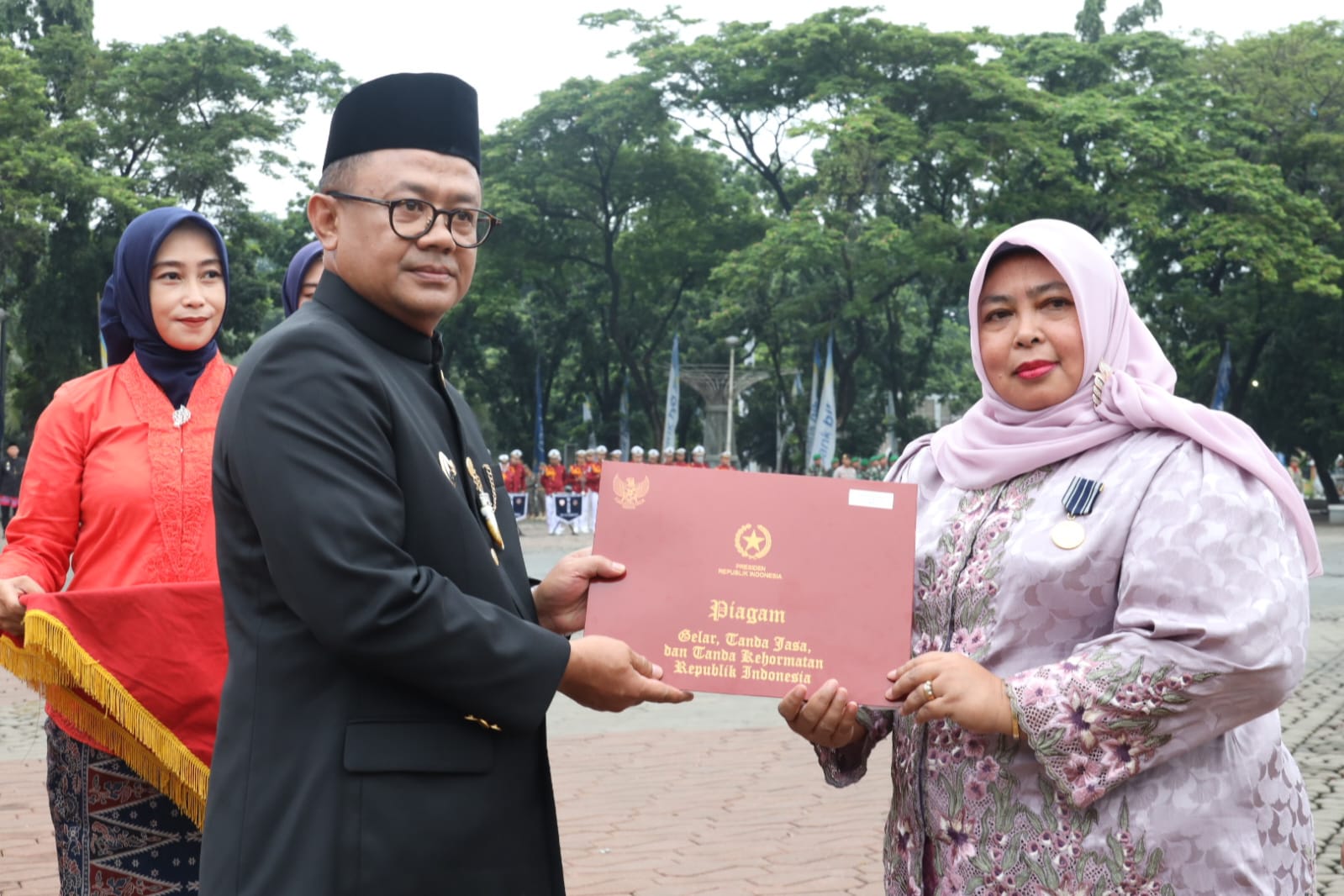 Penjabat (Pj) Wali Kota Bekasi R. Gani Muhamad memimpin upacara peringatan hari jadi ke-27 tahun Kota Bekasi di Alun-alun M.Hasibuan. Upacara dihadiri